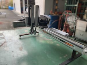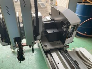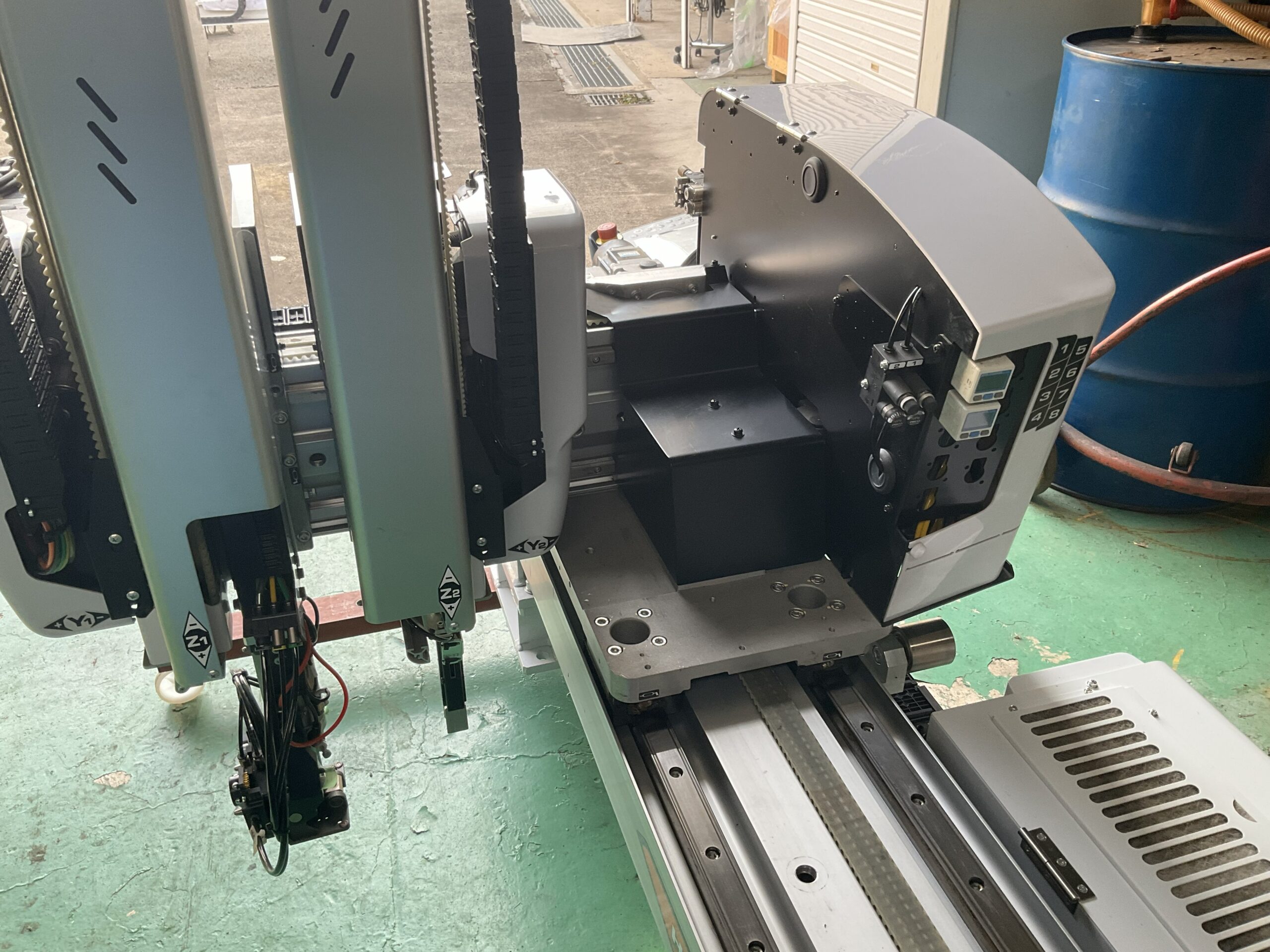 | 主仕様 | 正振り 5軸 吸着回路:2回路 製品チャック:2回路 メインストローク上下:800mm サブストローク上下:850mm 横ストローク:1900mm |
